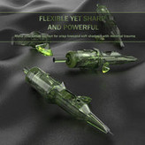 این کارتریجها با اکثر دستگاهها و گریپهای سیستم کارتریجی سازگار هستند، بهصورت تکی بستهبندی شده و ۱۰۰٪ با گاز EO استریل میشوند. سوزنها از استیل پزشکی ژاپنی 304 ساخته شده و بدنه از پلاستیک PC گرید پزشکی است.
