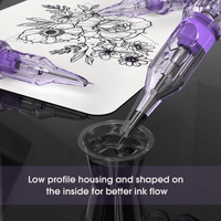 نوک مگ منحنی برای حرکت راحتتر در گوشهها و نوک لاینر باریک برای اجرای جزئیات ظریف، خطوط دقیق و تکسچر طراحی شده است. هر کارتریج فیت دقیق سوزن را تضمین میکند و لبههای صاف آن آسیب اضافی به پوست را به حداقل میرساند.