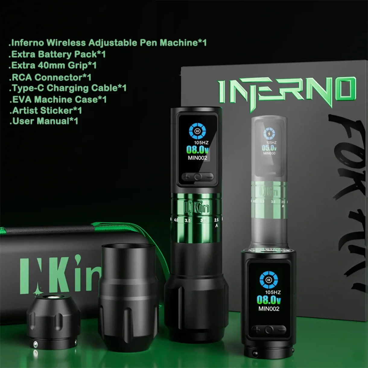 پن شارژی INKIN Inferno یک دستگاه قدرتمند و حرفهای برای آرتیستهایی است که از پنهای ضعیف و کمجون خسته شدن. این مدل با طراحی جسورانه، بدنه خوشدست و عملکرد کاملاً بیسیم، آزادی عمل کامل و کنترل بالا را در حین تتو فراهم میکند.