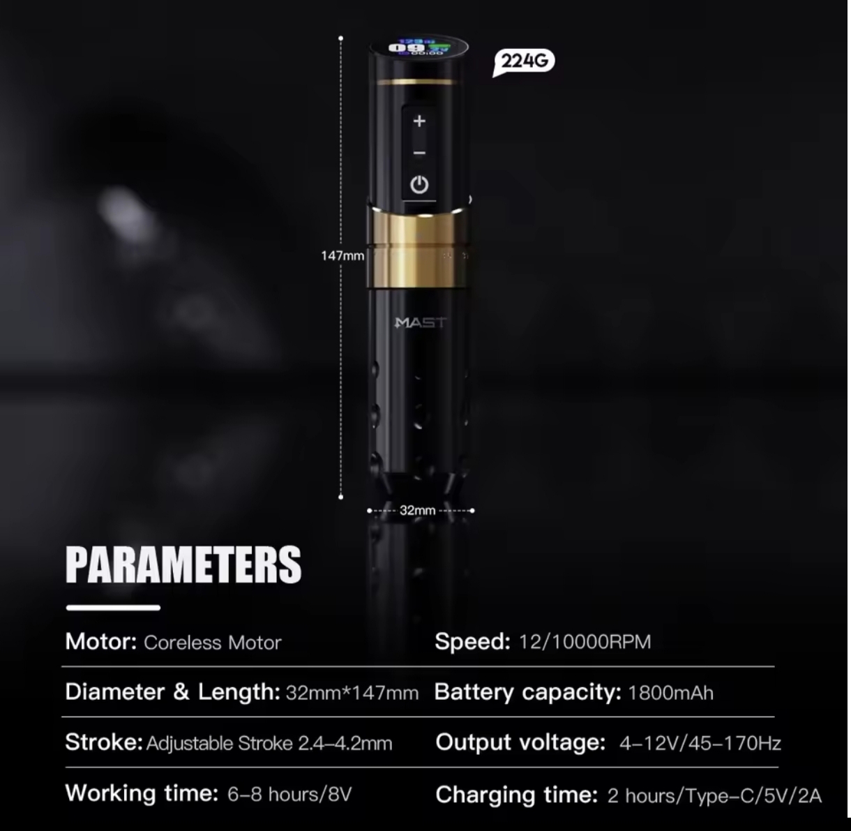 استروک (ضربه): ۷ حالت قابل تنظیم (۲.۴ / ۲.۷ / ۳.۰ / ۳.۳ / ۳.۶ / ۳.۹ / ۴.۲ میلیمتر)