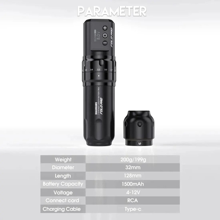 این دستگاه تتو لول آپ شده مدل فولد هستش که ویژگی های منحصر به فرد داره که مهم ترینش اینه که شما ماشینی دارید که هم وایرلس (بی سیم) کار میکنه هم با سیم