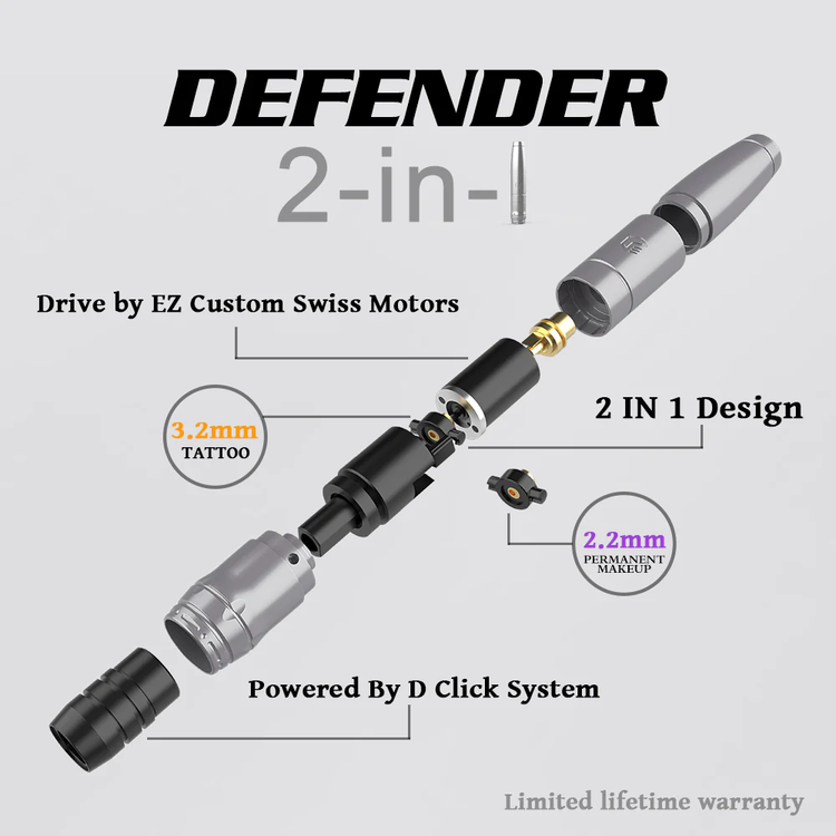 دستگاه تاتو روتاری پن دیفندر 2 در 1 ، عمر کاری دو برابر بیشتر از قلم تاتو معمولی است، بنابراین انتخابی باورنکردنی برای استفاده و جایگزینی روزانه شماست.